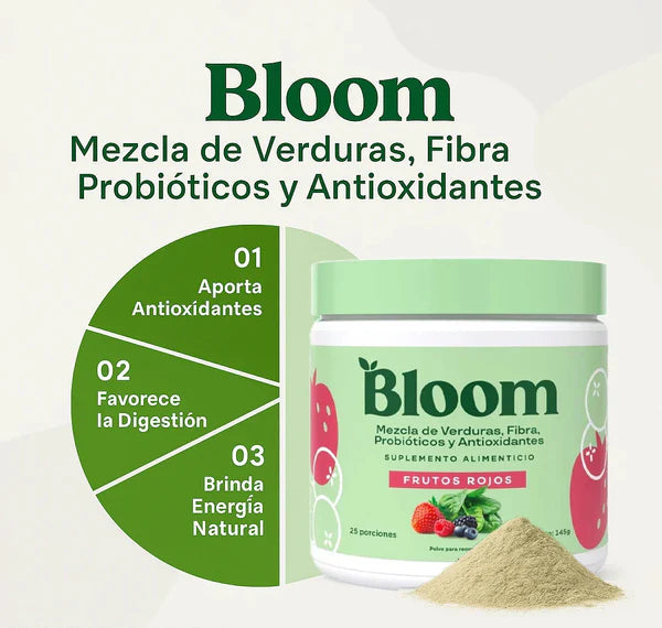 BLOOM es tu dosis diaria de superalimentos, diseñada para ayudarte a sentirte más ligera, con más energía y bienestar cada día.