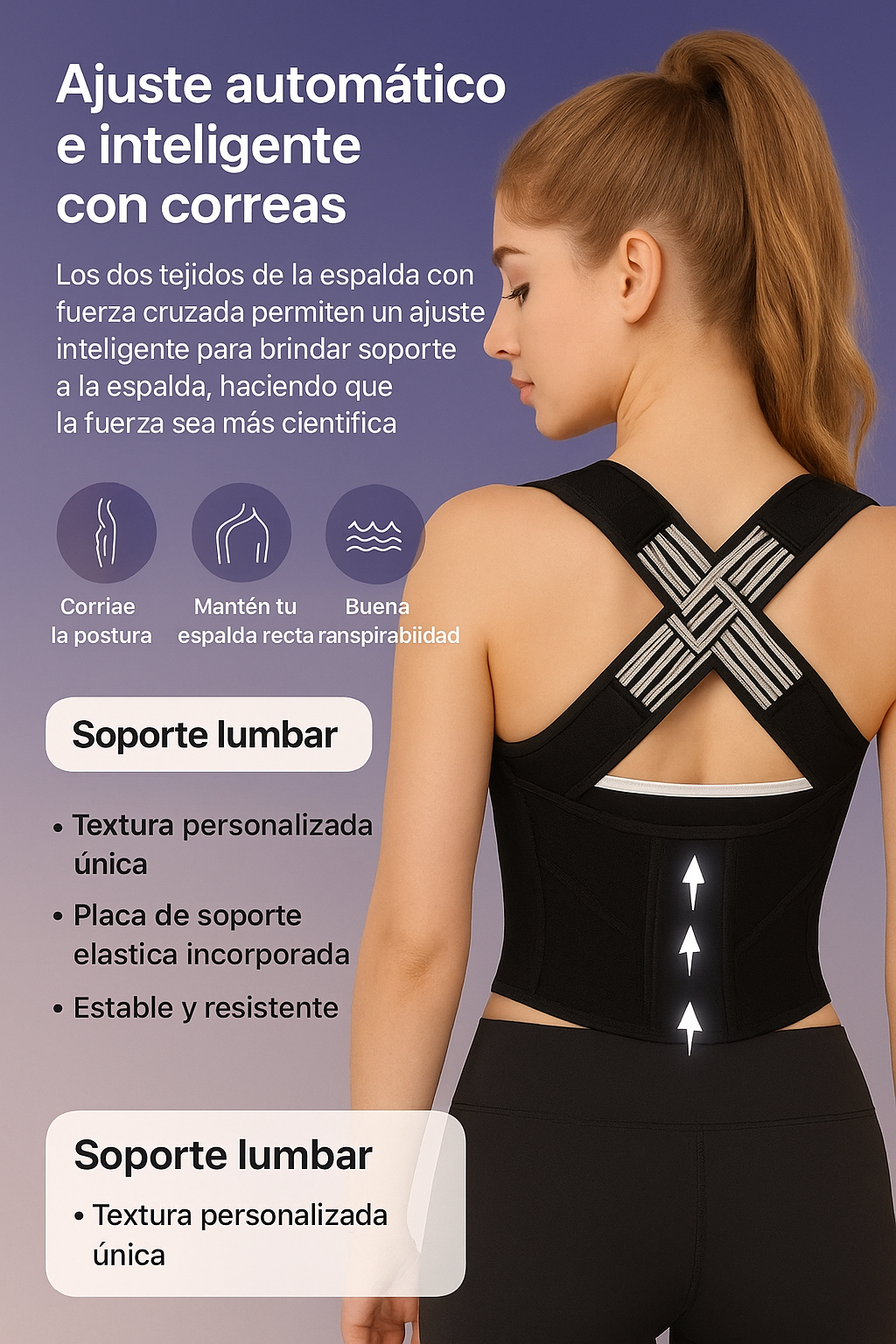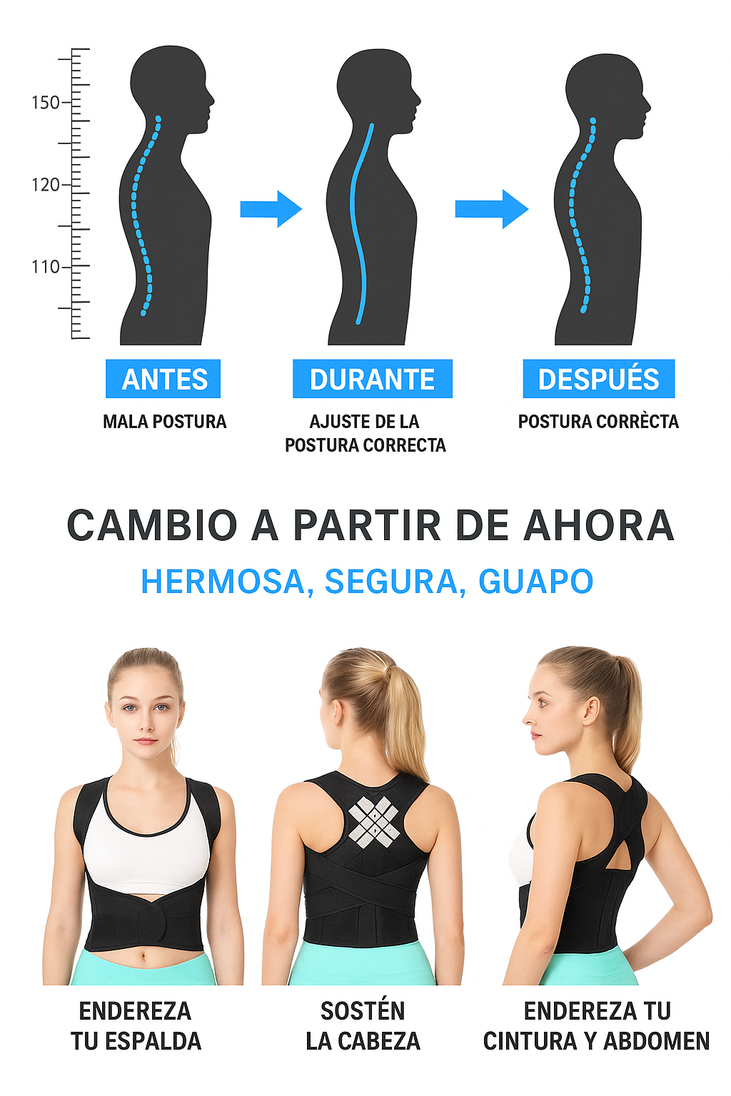 Con el Corrector PostureFlex , alinea tu espalda al instante, úsalo todo el día sin molestias y luce una postura firme y natural sin que nadie lo note.