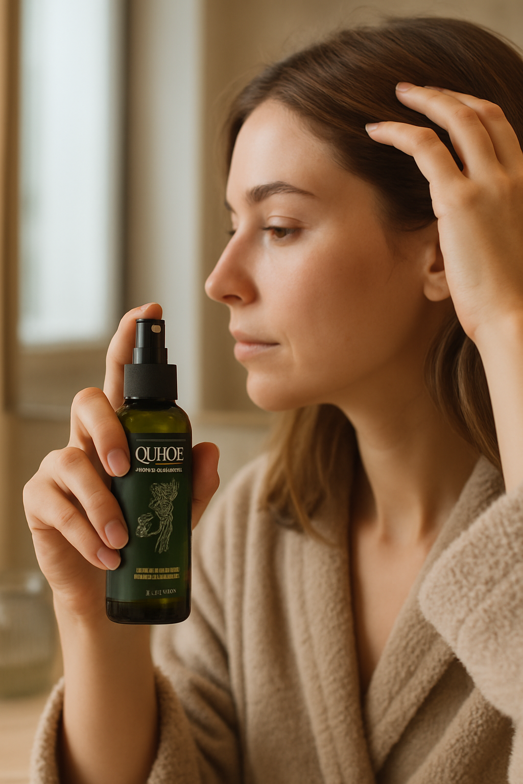 El Elixir Capilar Ouhoe aprovecha las propiedades antiinflamatorias y estimulantes del jengibre y el ginseng para mejorar la circulación sanguínea en el cuero cabelludo.