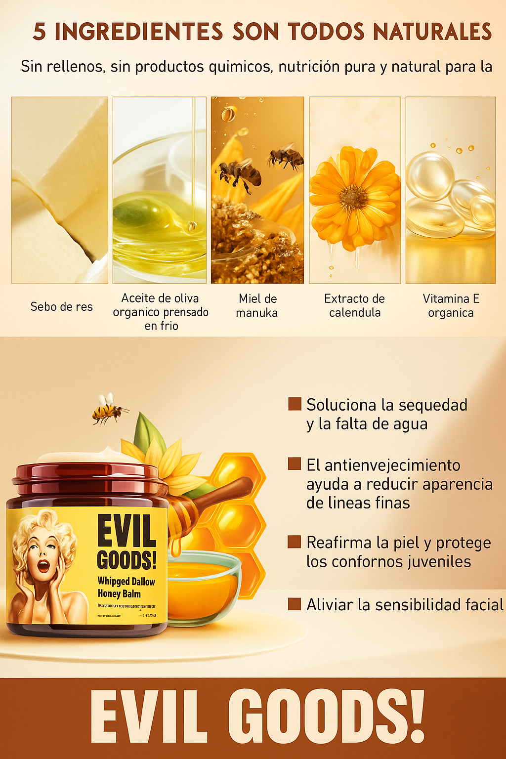 Sí. Aunque suene contraintuitivo, el sebo ayuda a equilibrar la producción natural de grasa en la piel, sin dejar sensación aceitosa.