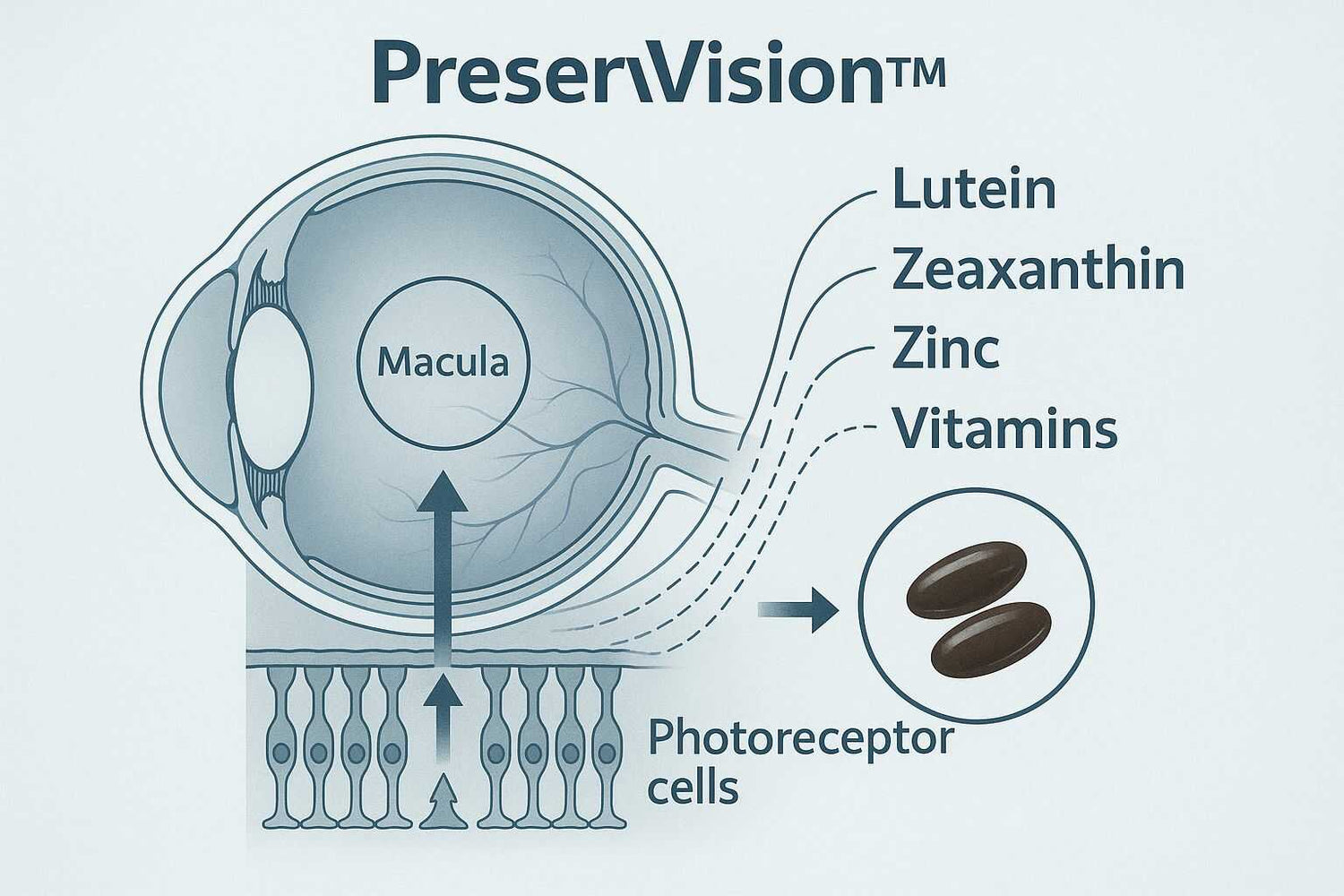 PreserVision actúa desde adentro, llevando nutrientes clave directamente a las células dañadas del ojo. Esto activa una limpieza celular que elimina toxinas y revitaliza la visión.